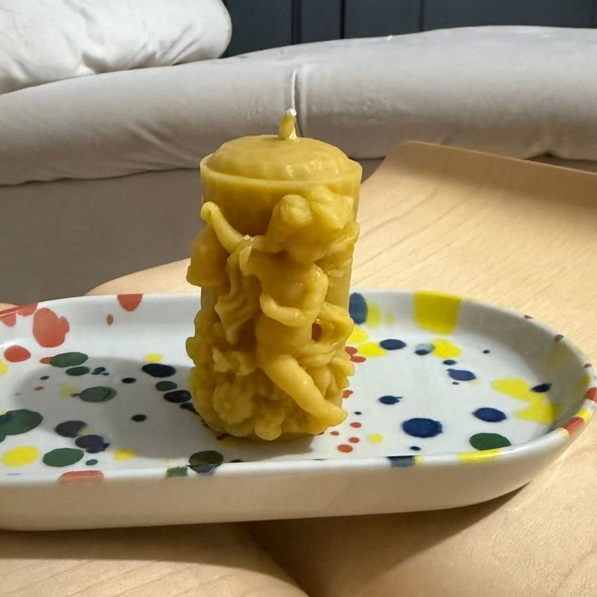 Această lumânare din ceară naturală de albine 100%, cu uleiuri esențiale și miruri, încărcată energetic, îți aduce energia și darurile Arhanghelului Metatron spre binele tău suprem.