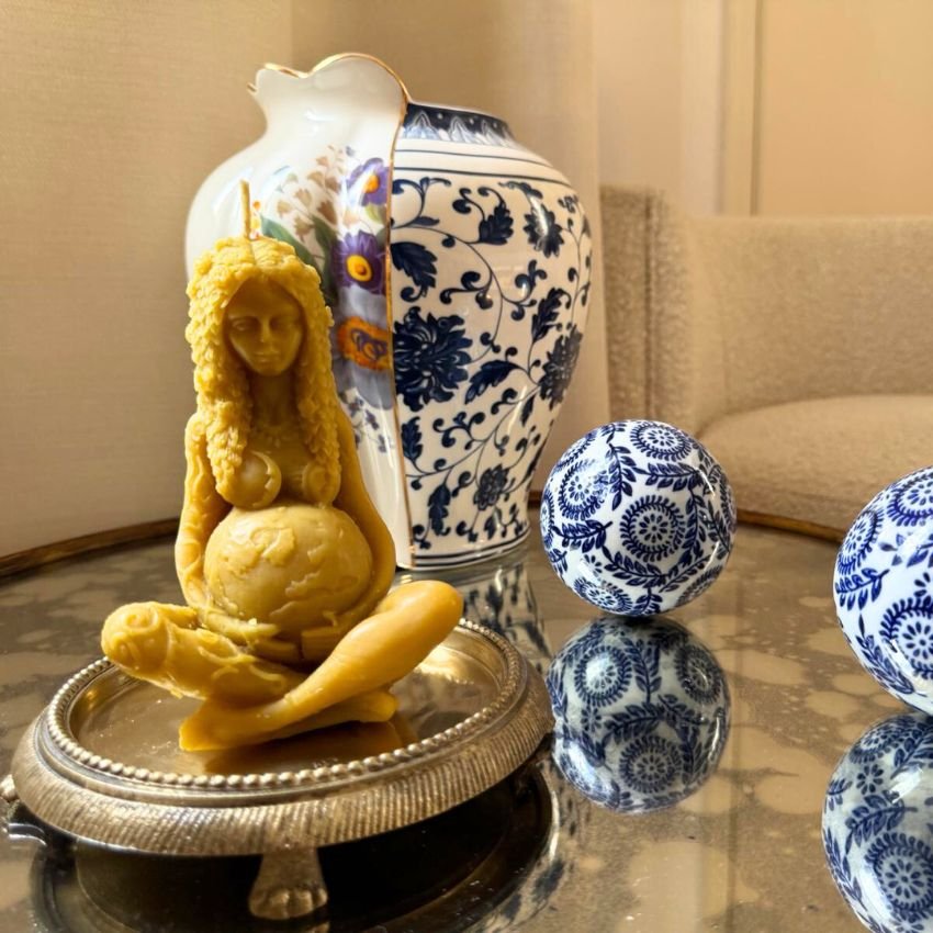 Această lumânare din ceară naturala de albine 100%, cu uleiuri esențiale și miruri, încărcată energetic, îți aduce energia Mamei Pământ și darurile acestei Planete.